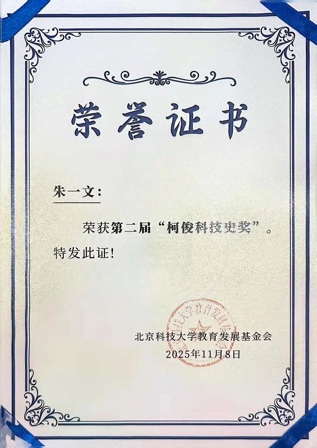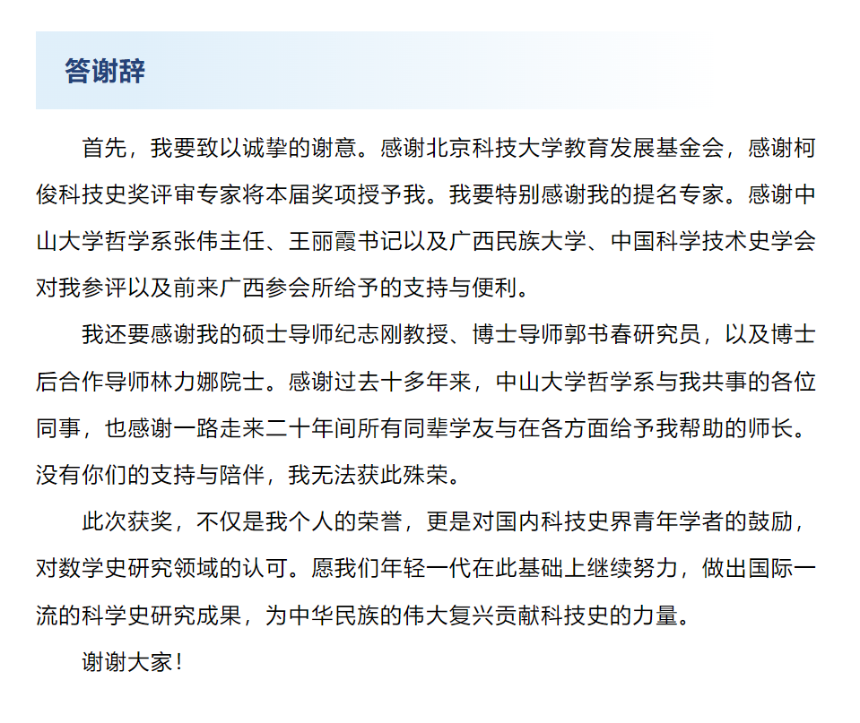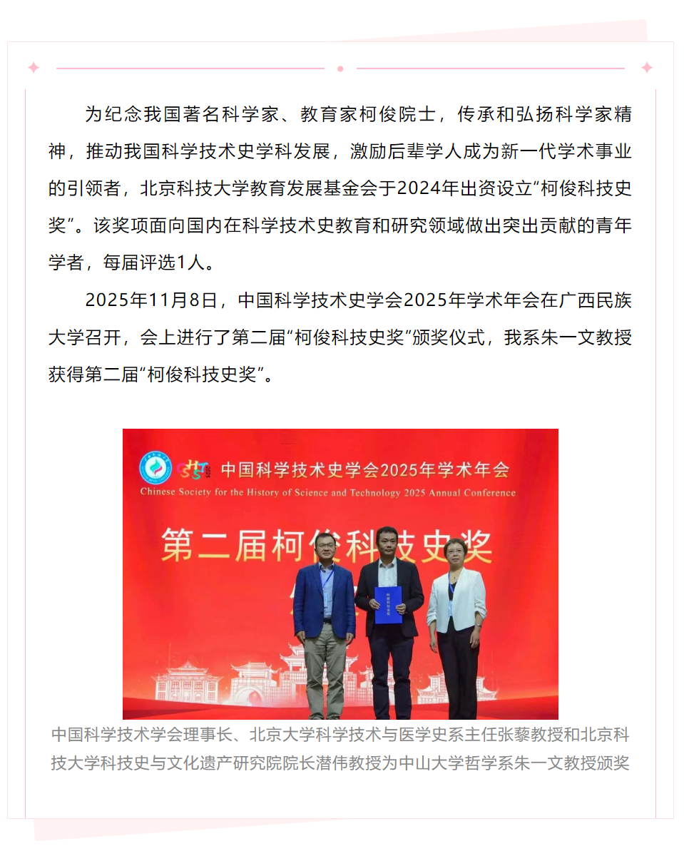 喜讯 | 我系朱一文教授获得第二届“柯俊科技史奖”