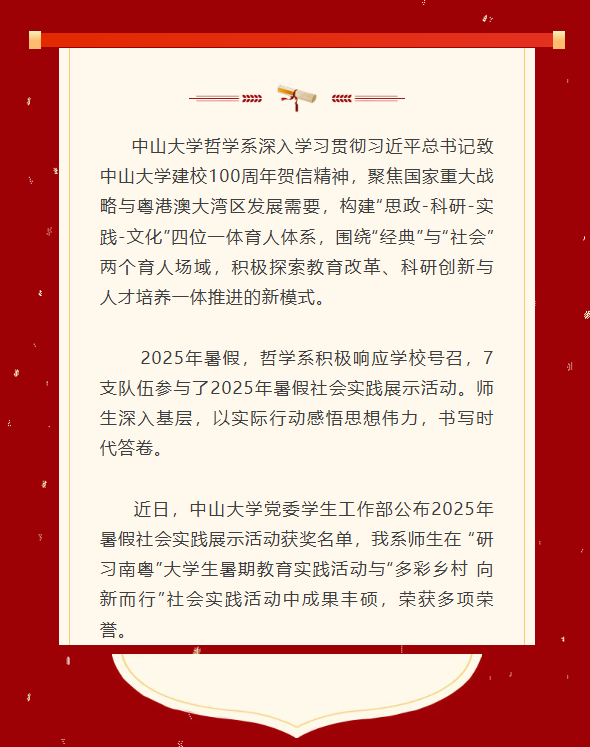 我系在中山大学2025年暑假社会实践展示活动中获得多项荣誉