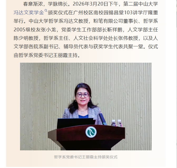薪火相传,文脉流芳——第二届中山大学冯达文奖学金颁奖仪式举行