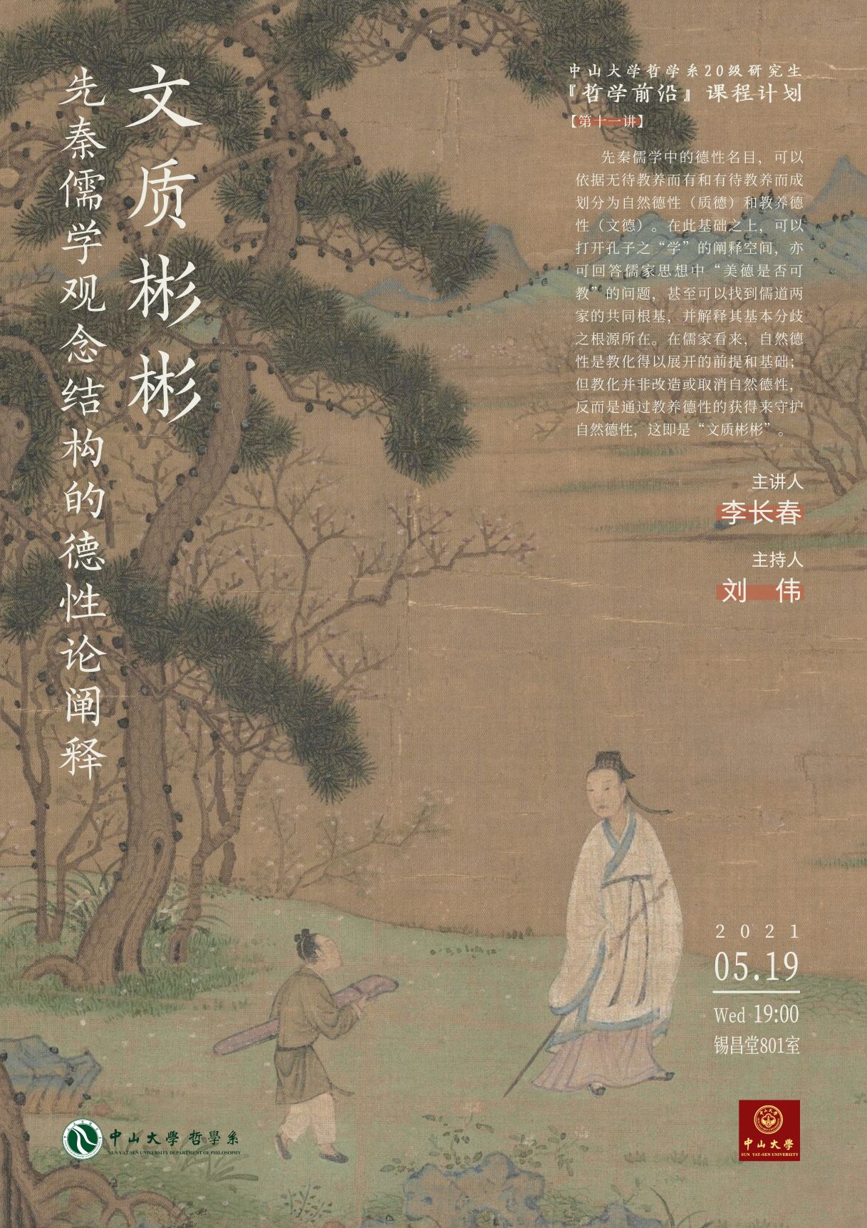“哲学前沿”课程第十一讲预告|李长春:文质彬彬 ——先秦儒学观念结构的德性论阐释