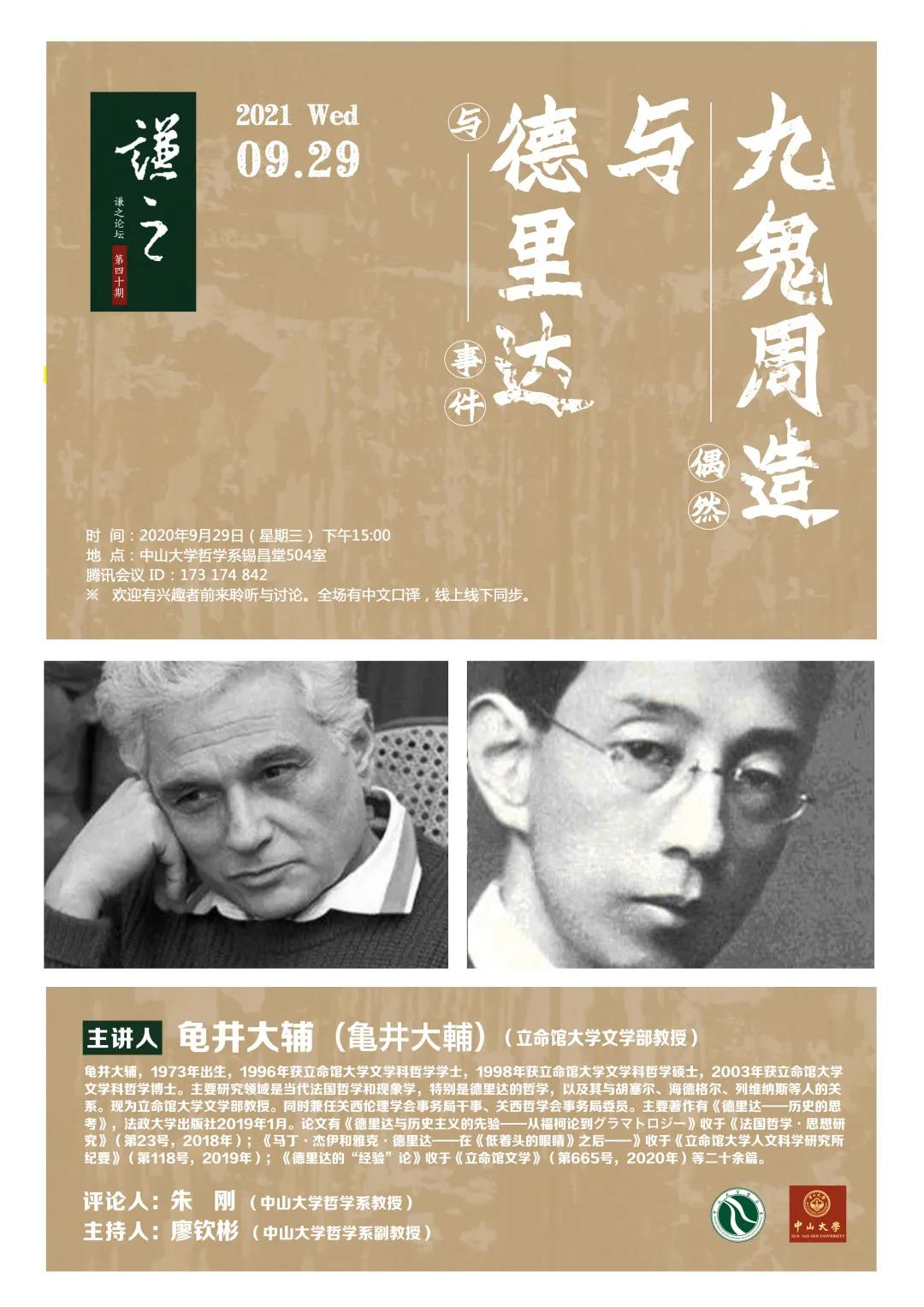谦之论坛预告 | 龟井大辅:九鬼周造与德里达——偶然与事件