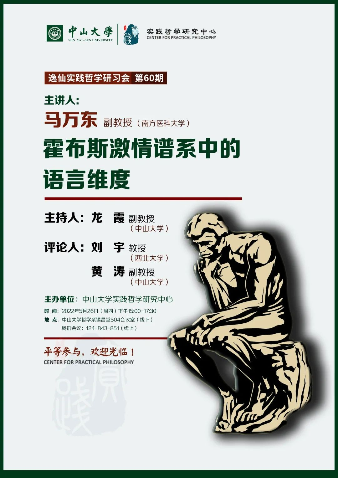 中山大学哲学系锡昌堂504室(线下) 腾讯会议账号:124-843-851(线上)