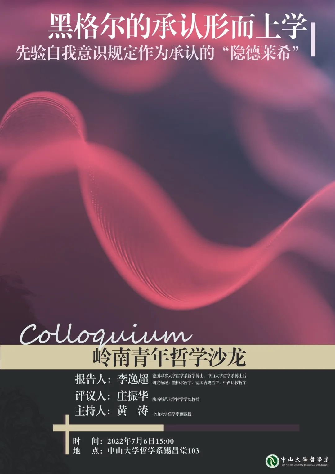 岭南青年哲学沙龙 | 李逸超:黑格尔的承认形而上学 ——先验自我意识规定作为承认的“隐德莱希”