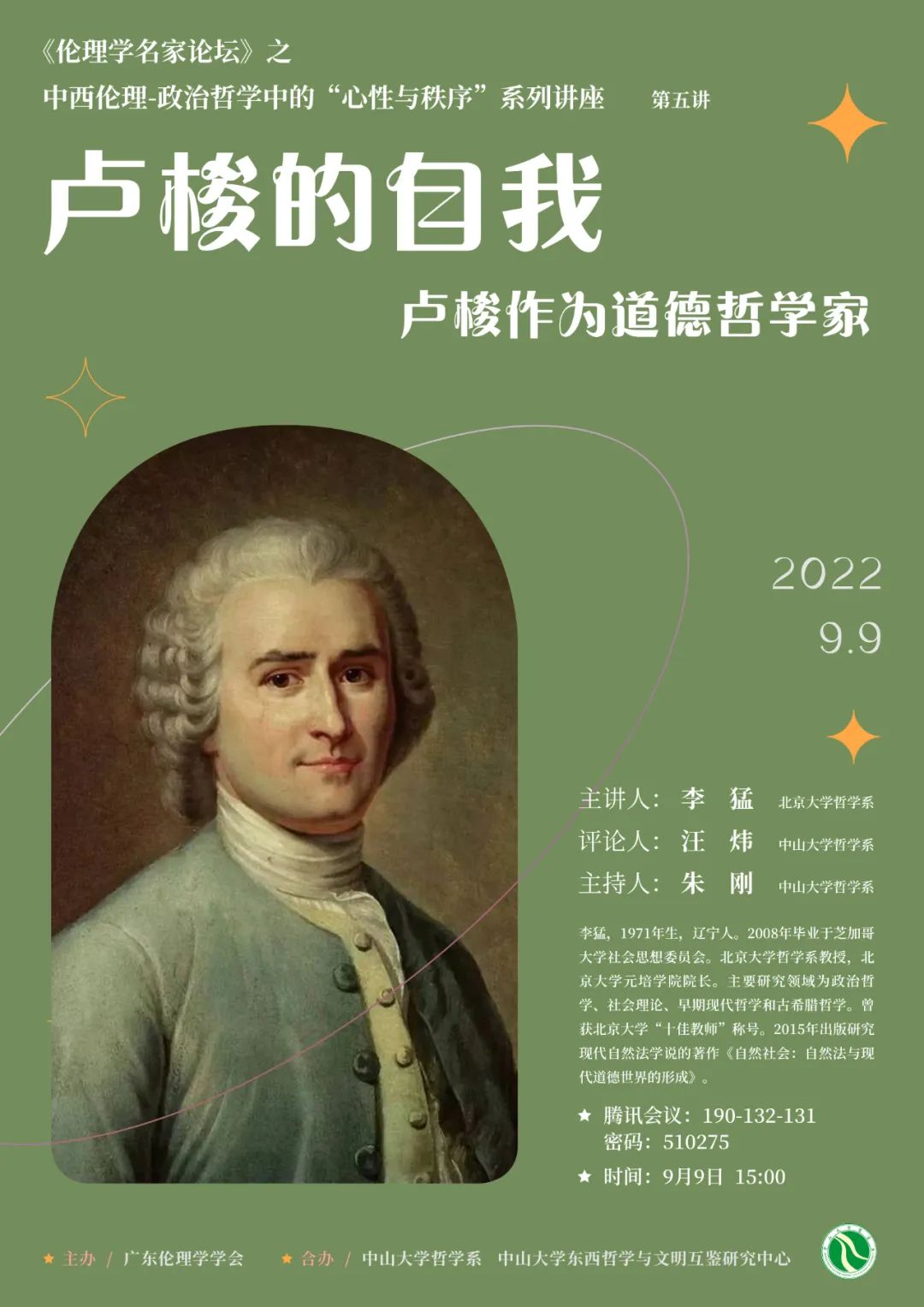 伦理学名家论坛第五讲预告 | 李猛:卢梭的自我——卢梭作为道德哲学家