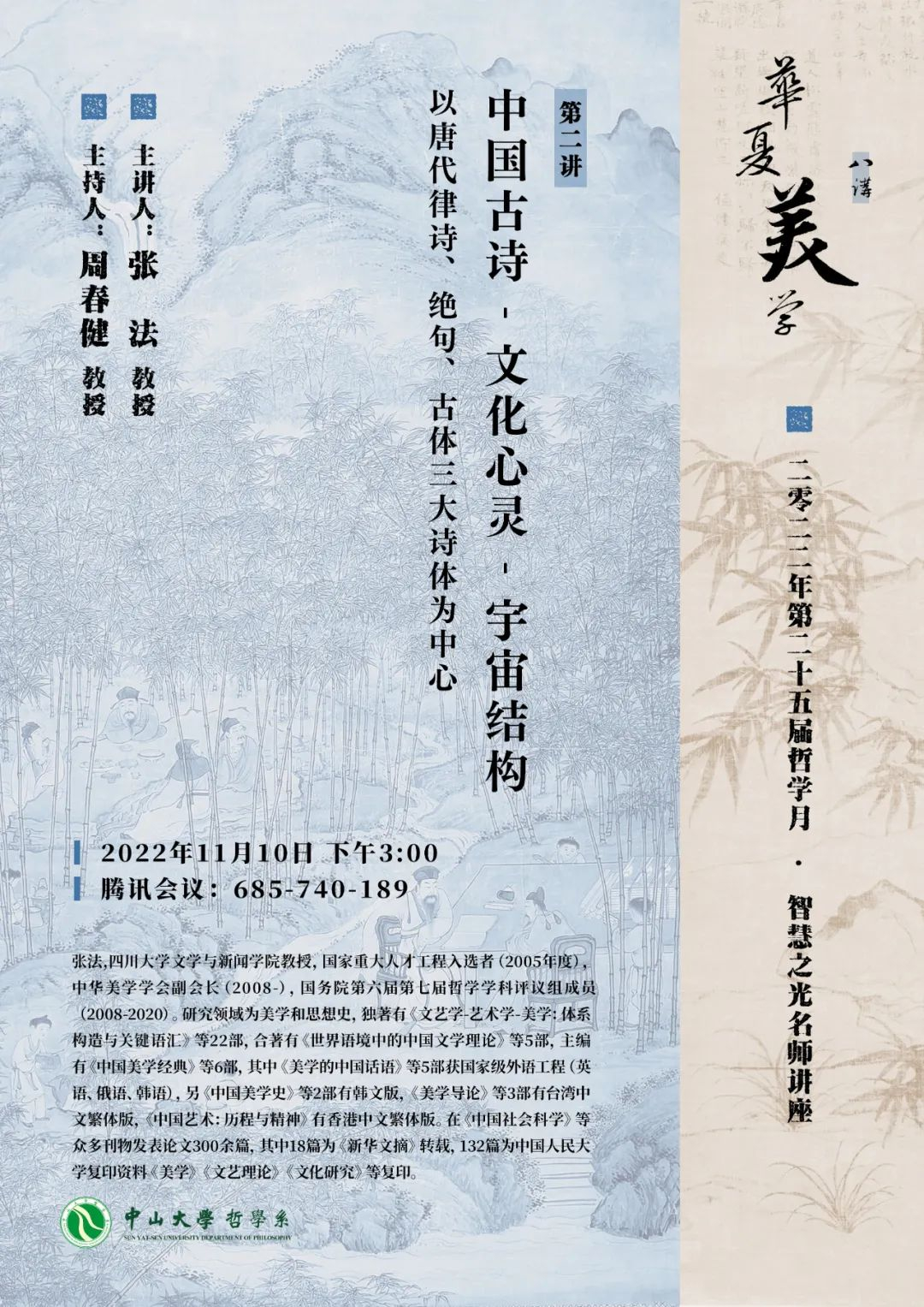 “华夏美学”系列讲座第二讲预告 | 张法:中国古诗-文化心灵-宇宙结构:以唐代律诗、绝句、古体三大诗体为中心