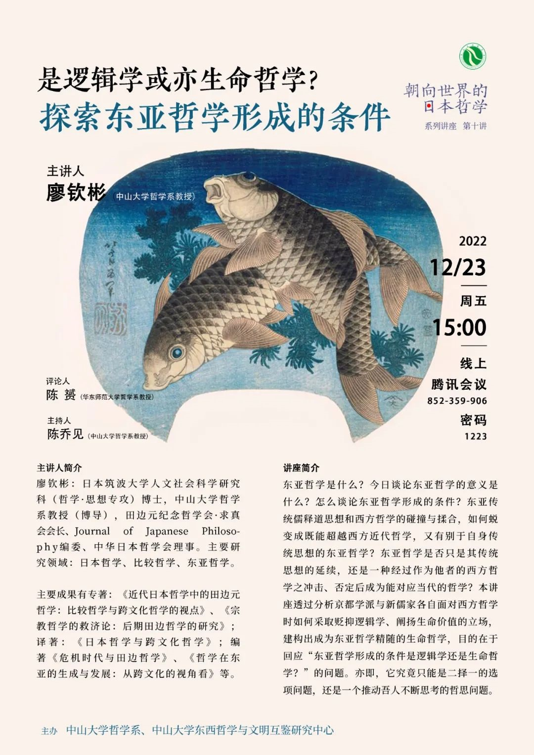 “朝向世界的日本哲学”系列讲座第十讲预告 | 是逻辑学或亦生命哲学?:探索东亚哲学形成的条件