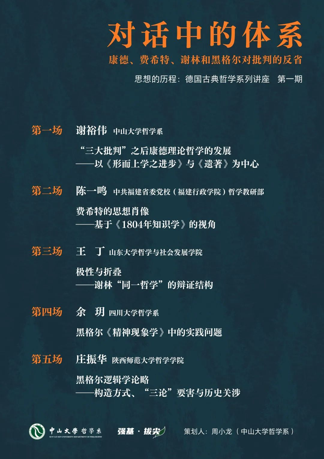 德国古典哲学系列讲座(第一期)预告|对话中的体系:康德、费希特、谢林和黑格尔对批判的反省