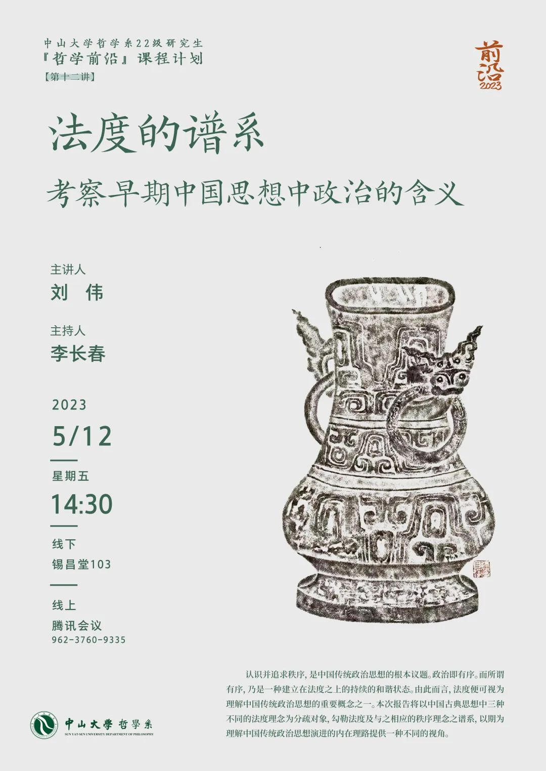 “哲学前沿”课程第十二讲预告|刘伟:法度的谱系:考察早期中国思想中政治的含义