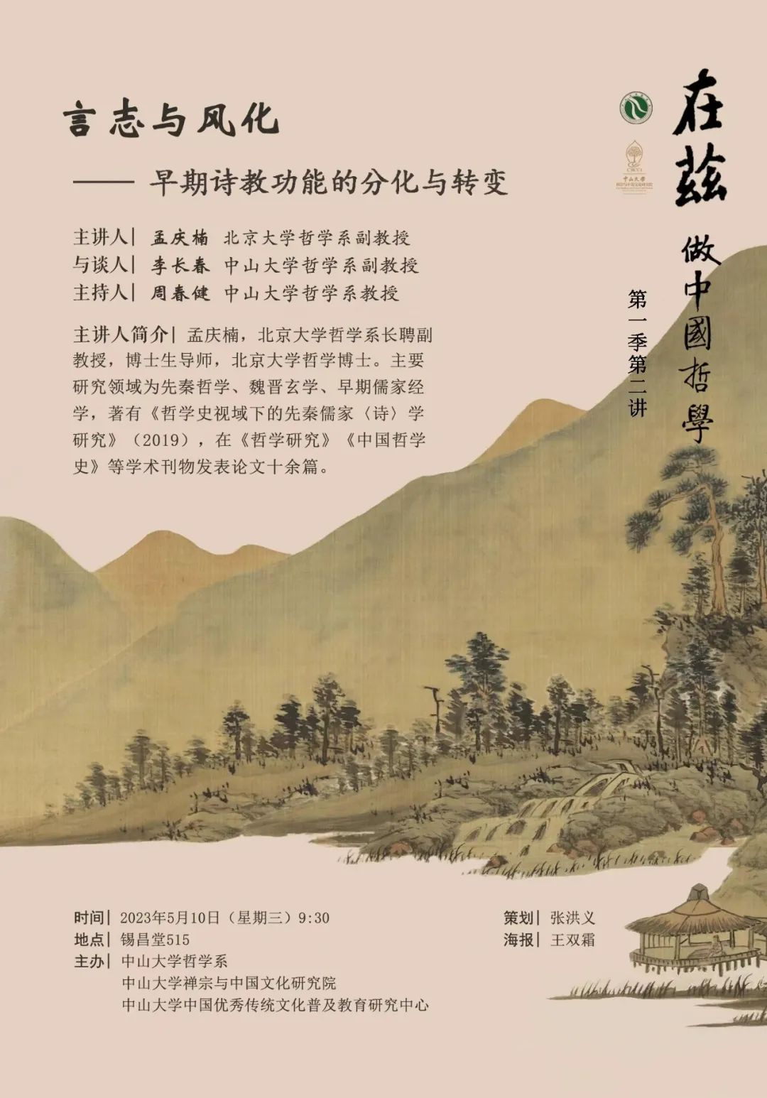“在兹·做中国哲学”系列讲座第二讲预告|孟庆楠:言志与风化——早期诗教功能的分化与转变