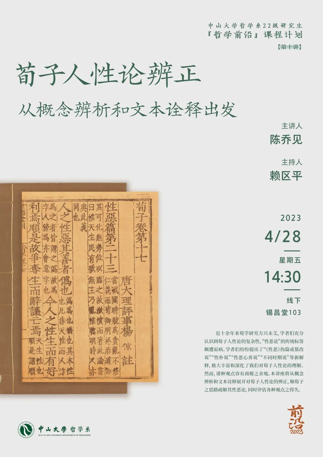 “哲学前沿”课程第十讲预告|陈乔见:荀子人性论辨正——从概念辨析和文本诠释出发