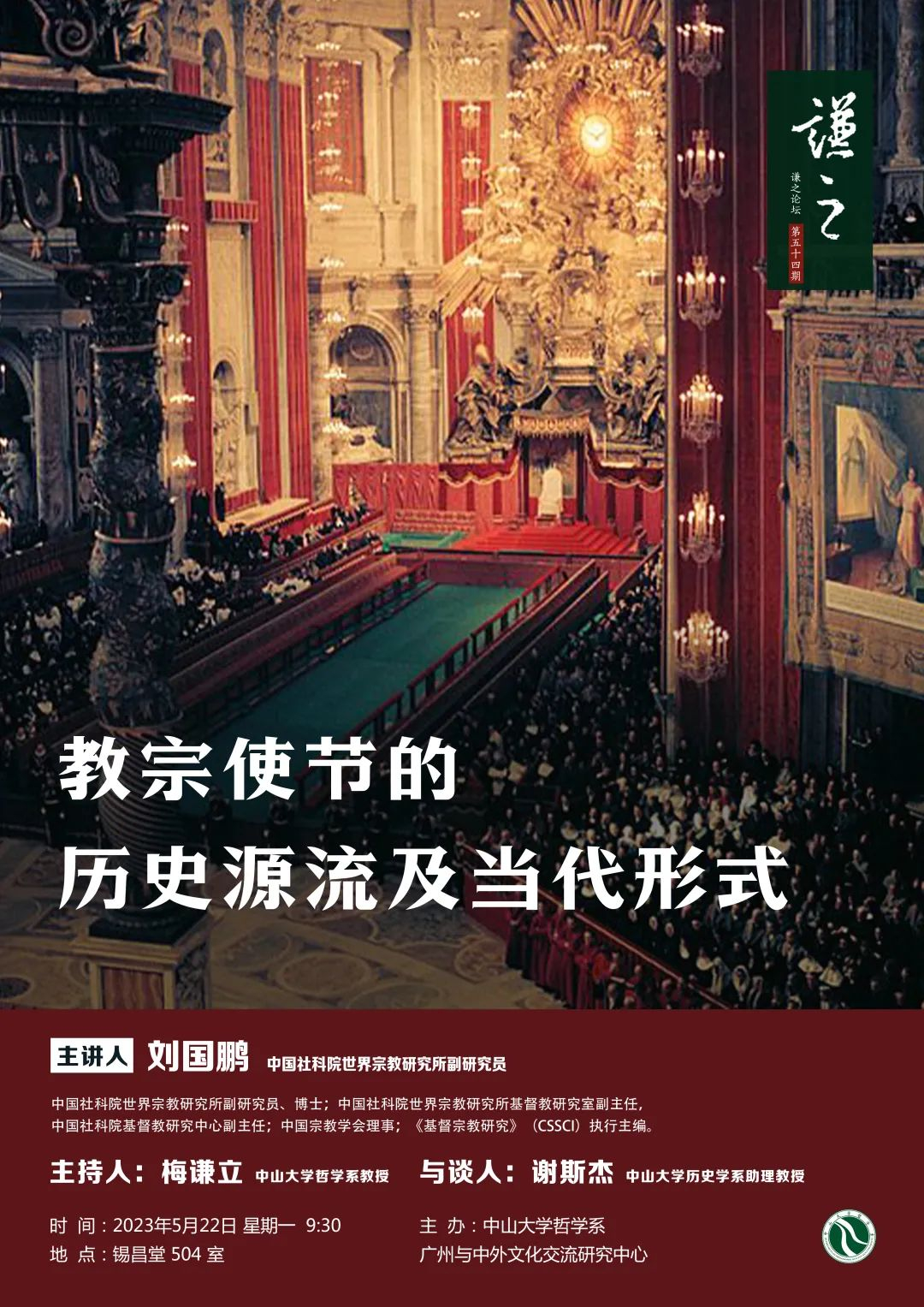 谦之论坛预告 | 刘国鹏:教宗使节的历史源流及当代形式
