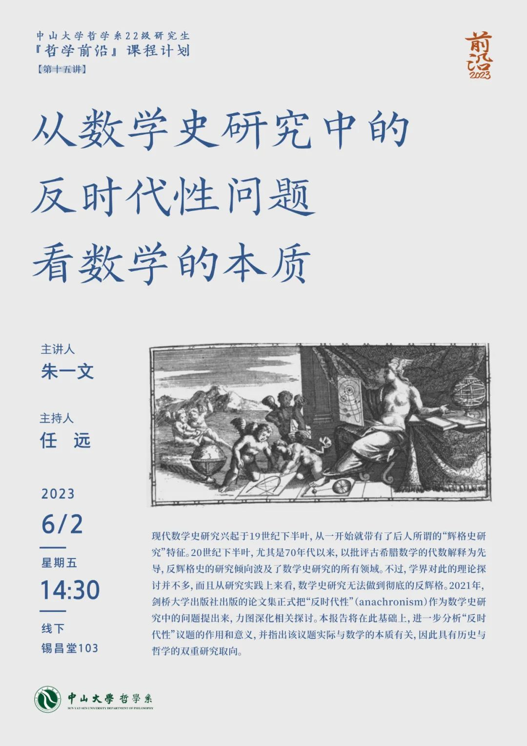 “哲学前沿”课程第十五讲预告|朱一文:从数学史研究中的反时代性问题看数学的本质