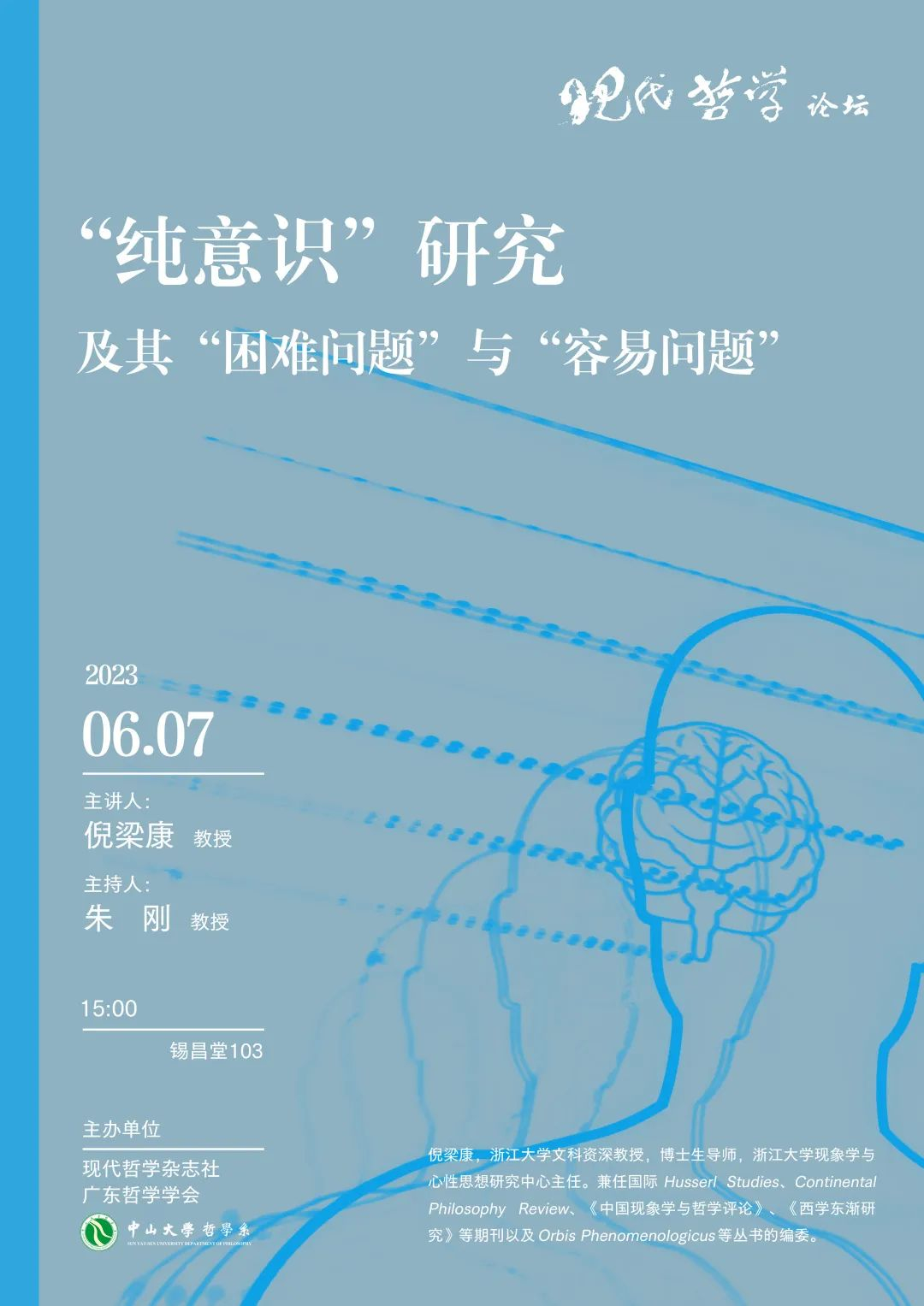 讲座预告 | 倪梁康:“纯意识”研究及其“困难问题”与“容易问题”