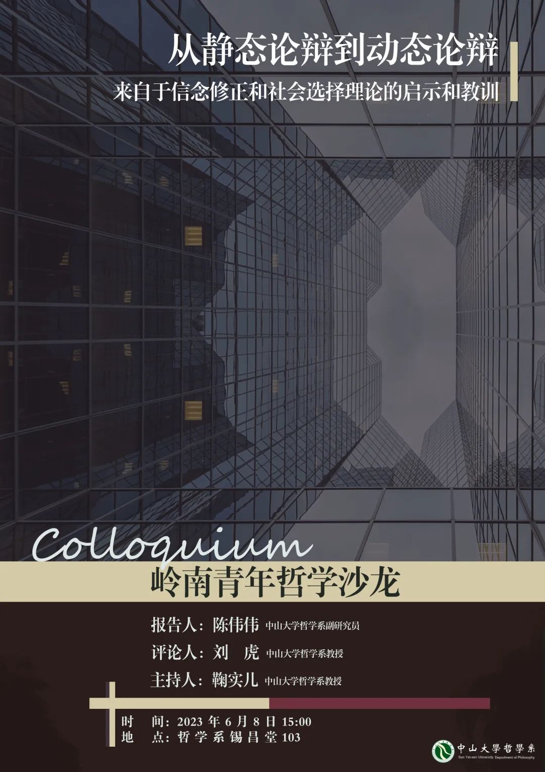 岭南青年哲学沙龙预告 | 陈伟伟:从静态论辩到动态论辩——来自于信念修正和社会选择理论的启示和教训
