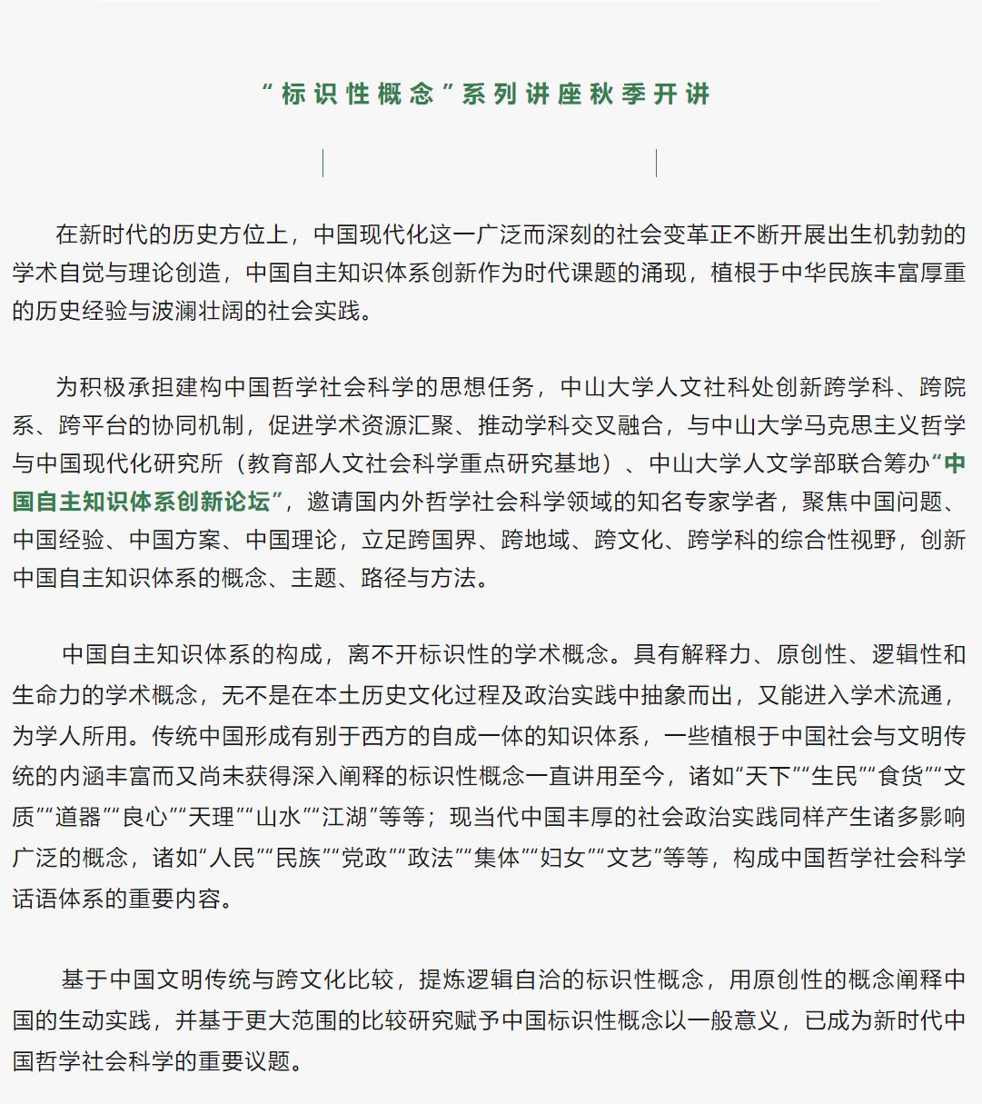 导航痕迹 中山大学哲学系 “标识性概念”系列讲座预告 “标识性概念”系列讲座预告 发布日期:2023-10-10 活动时间 2023年10月10日 00:00 - 2023年12月31日 00:00