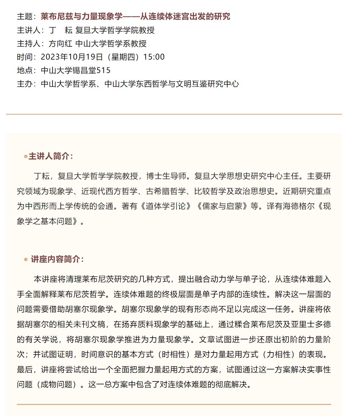东西哲学与文明互鉴讲坛预告|丁耘:莱布尼兹与力量现象学——从连续体迷宫出发的研究