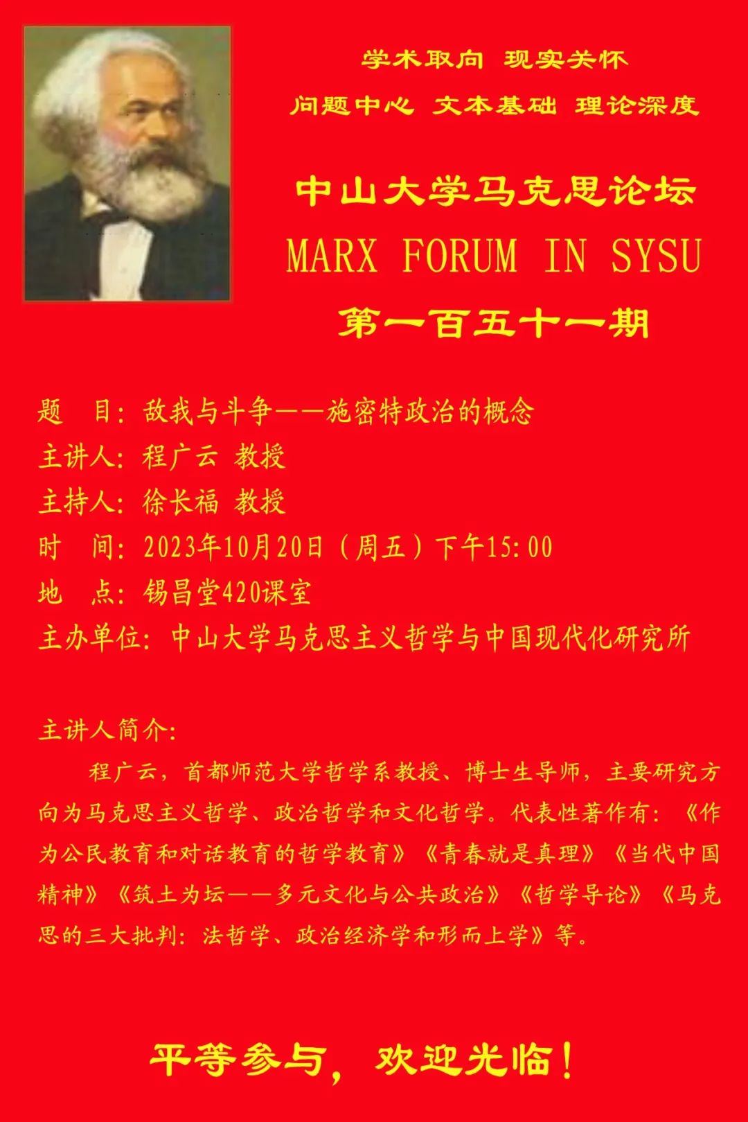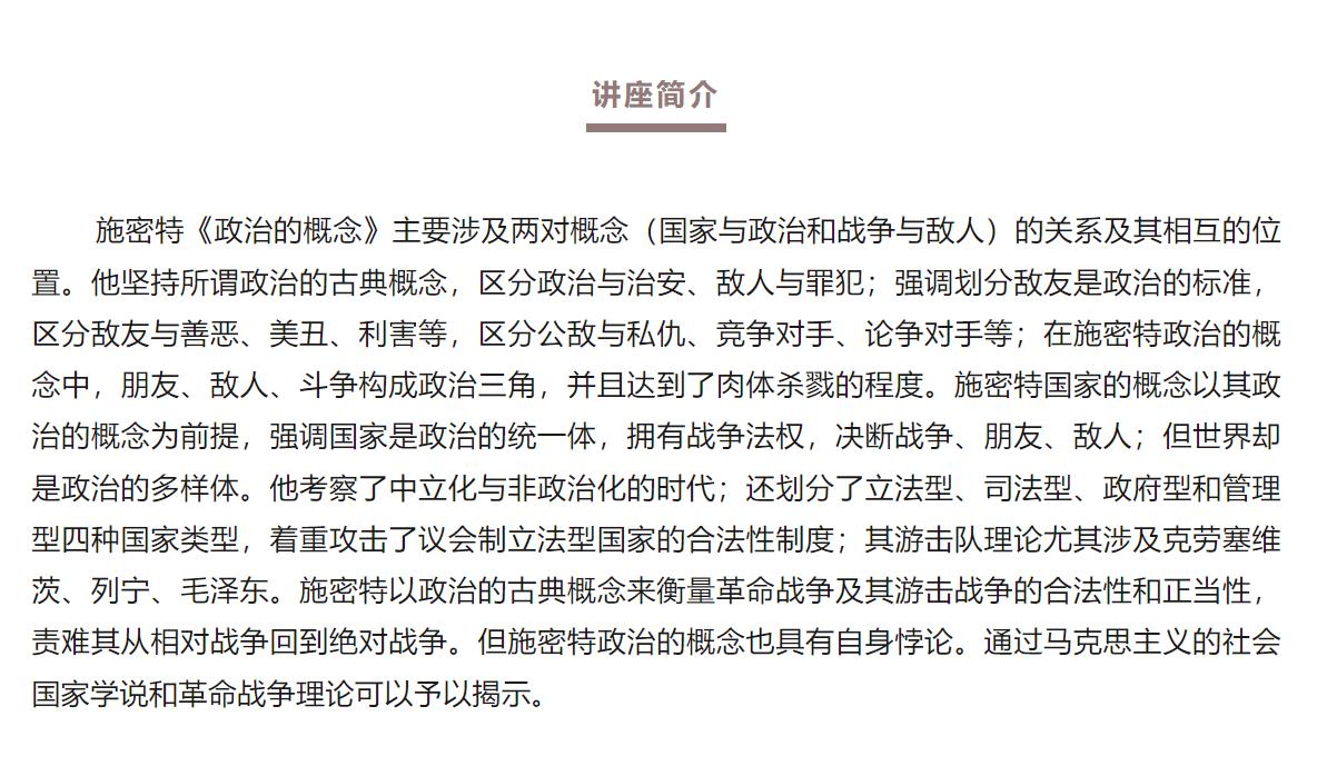 中山大学马克思论坛第151期预告 | 程广云:敌我与斗争——施密特政治的概念