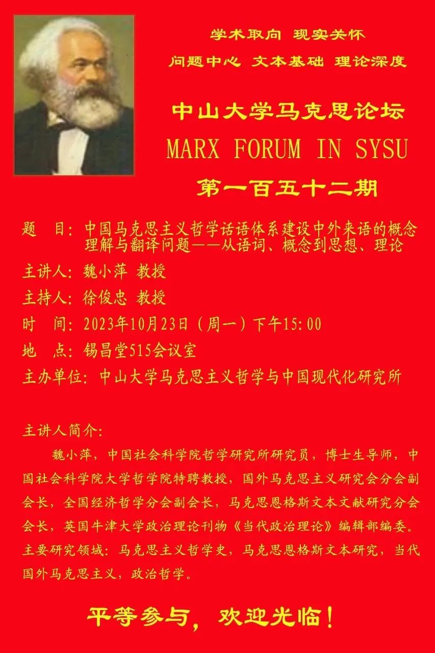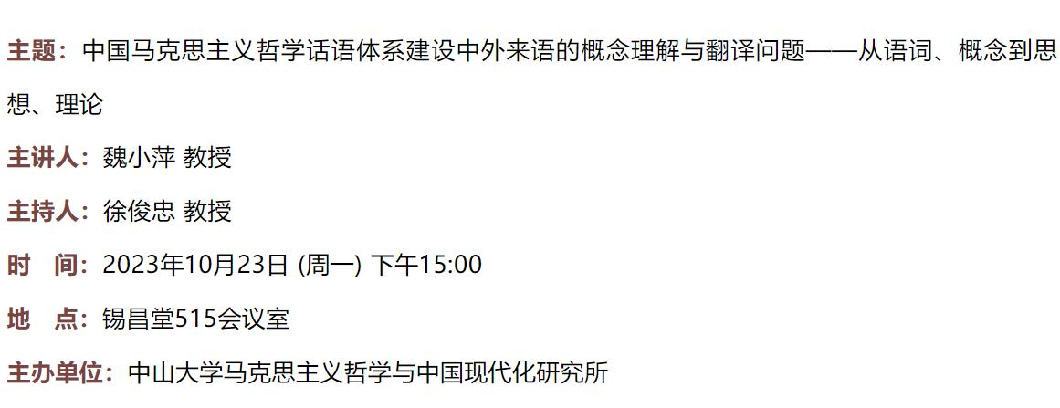中山大学马克思论坛第152期预告 | 魏小萍:中国马克思主义哲学话语体系建设中外来语的概念理解与翻译问题