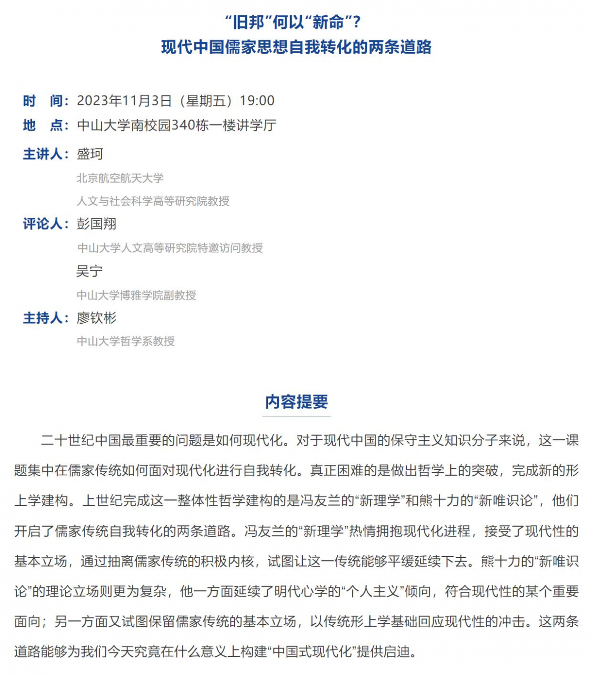 逸仙进阶讲堂预告 | 盛珂:“旧邦”何以“新命”?——现代中国儒家思想自我转化的两条道路