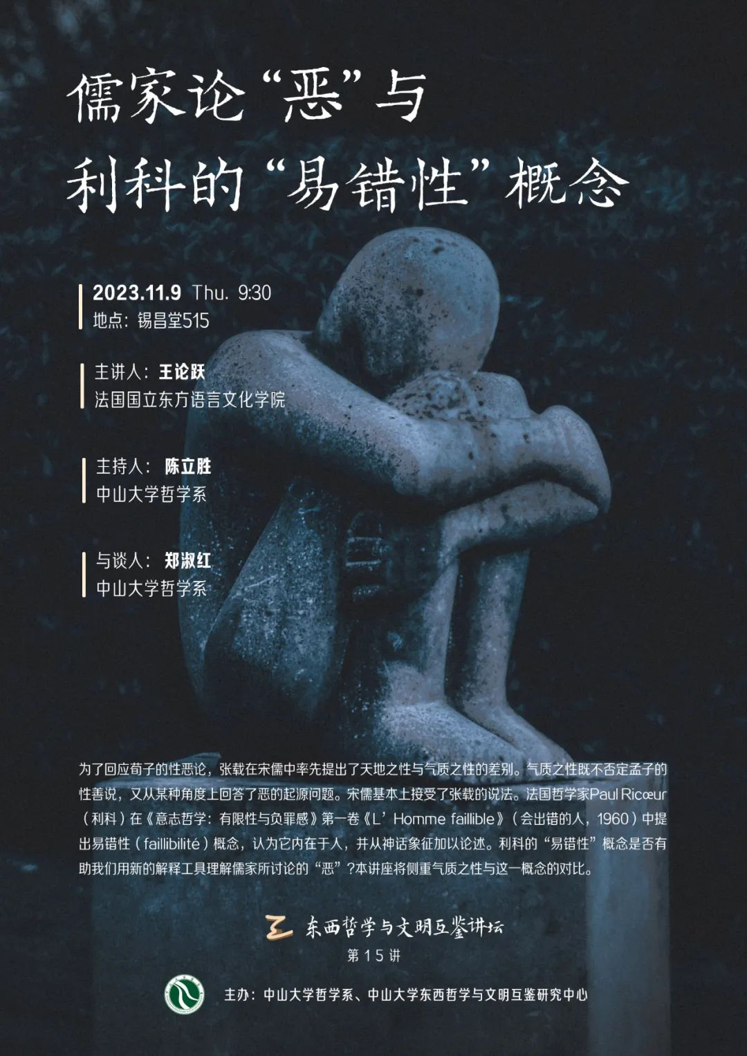 东西哲学与文明互鉴讲坛预告|王论跃:儒家论“恶”与利科的“易错性”概念
