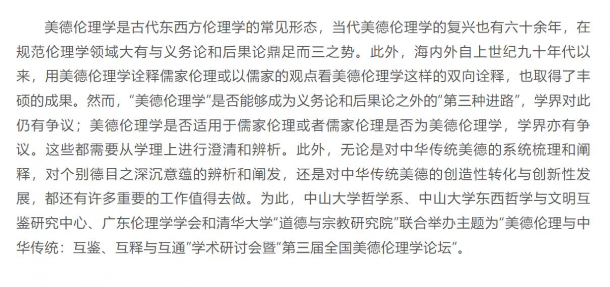 会议预告 | “美德伦理与中华传统:互鉴、互释与互通”学术研讨会暨第三届全国美德伦理学论坛