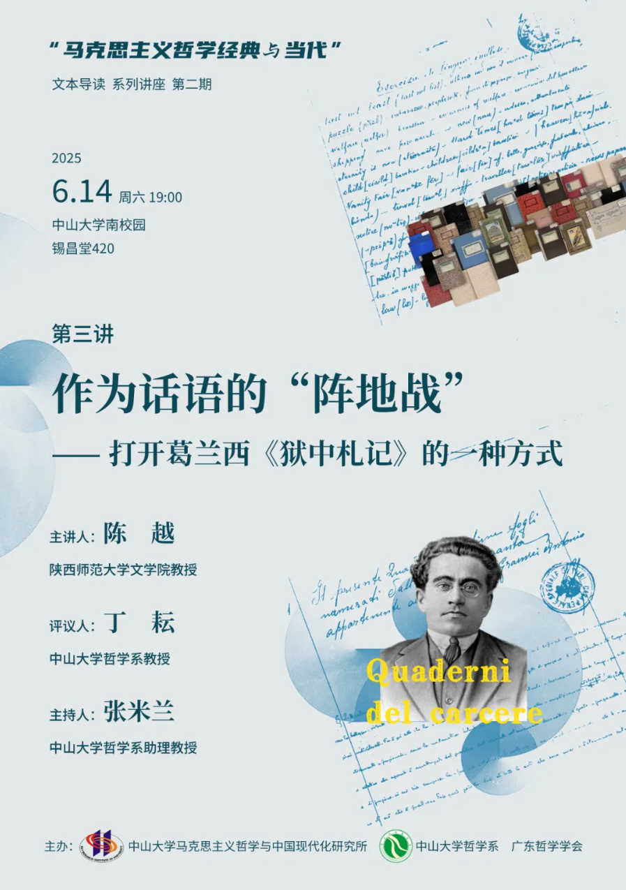 “马克思主义哲学经典与当代”文本导读第二期第三讲预告|陈越:作为话语的“阵地战”——打开葛兰西《狱中札记》的一种方式