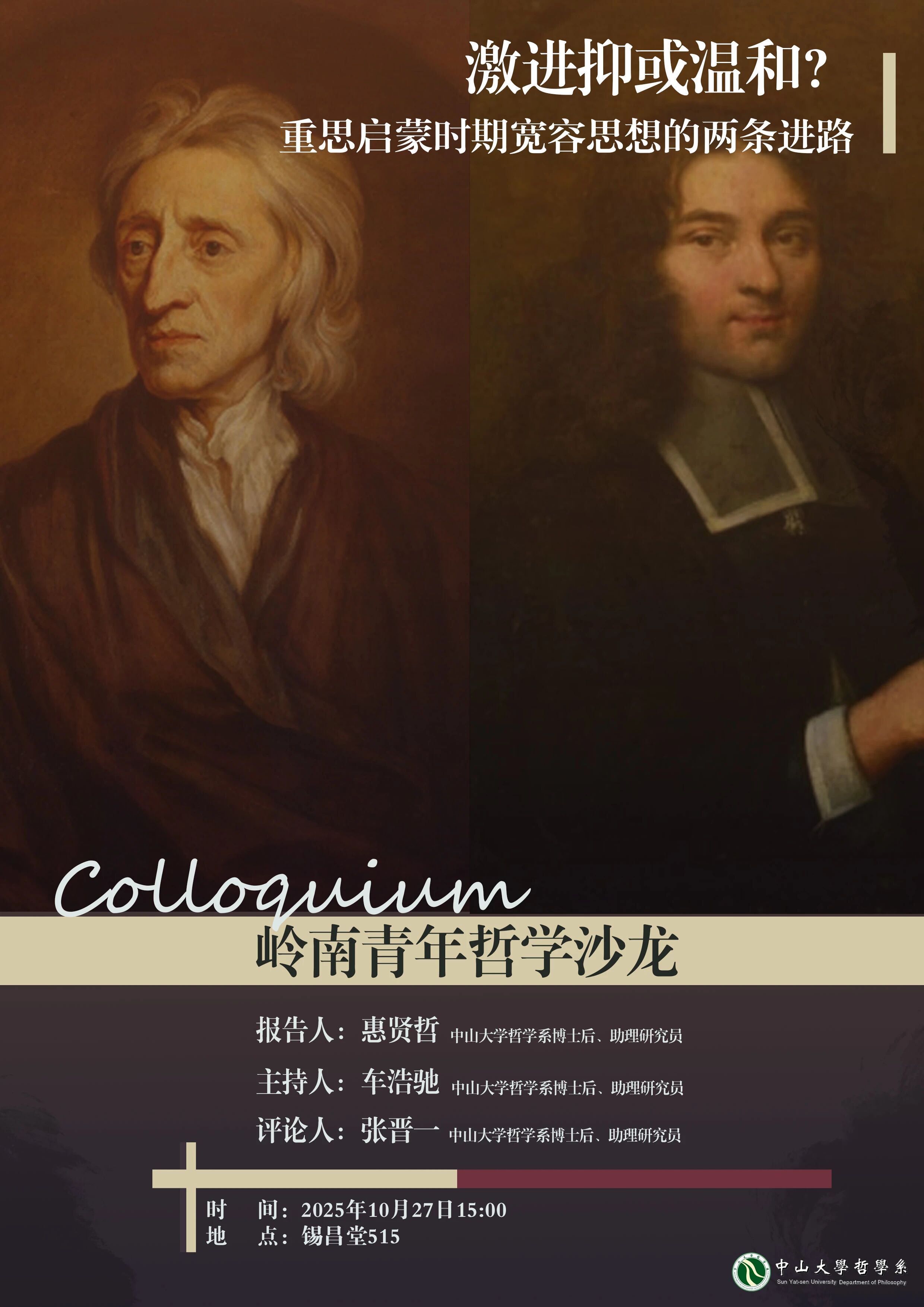 岭南青年哲学沙龙预告 | 惠贤哲:激进抑或温和?——重思启蒙时期宽容思想的两条进路