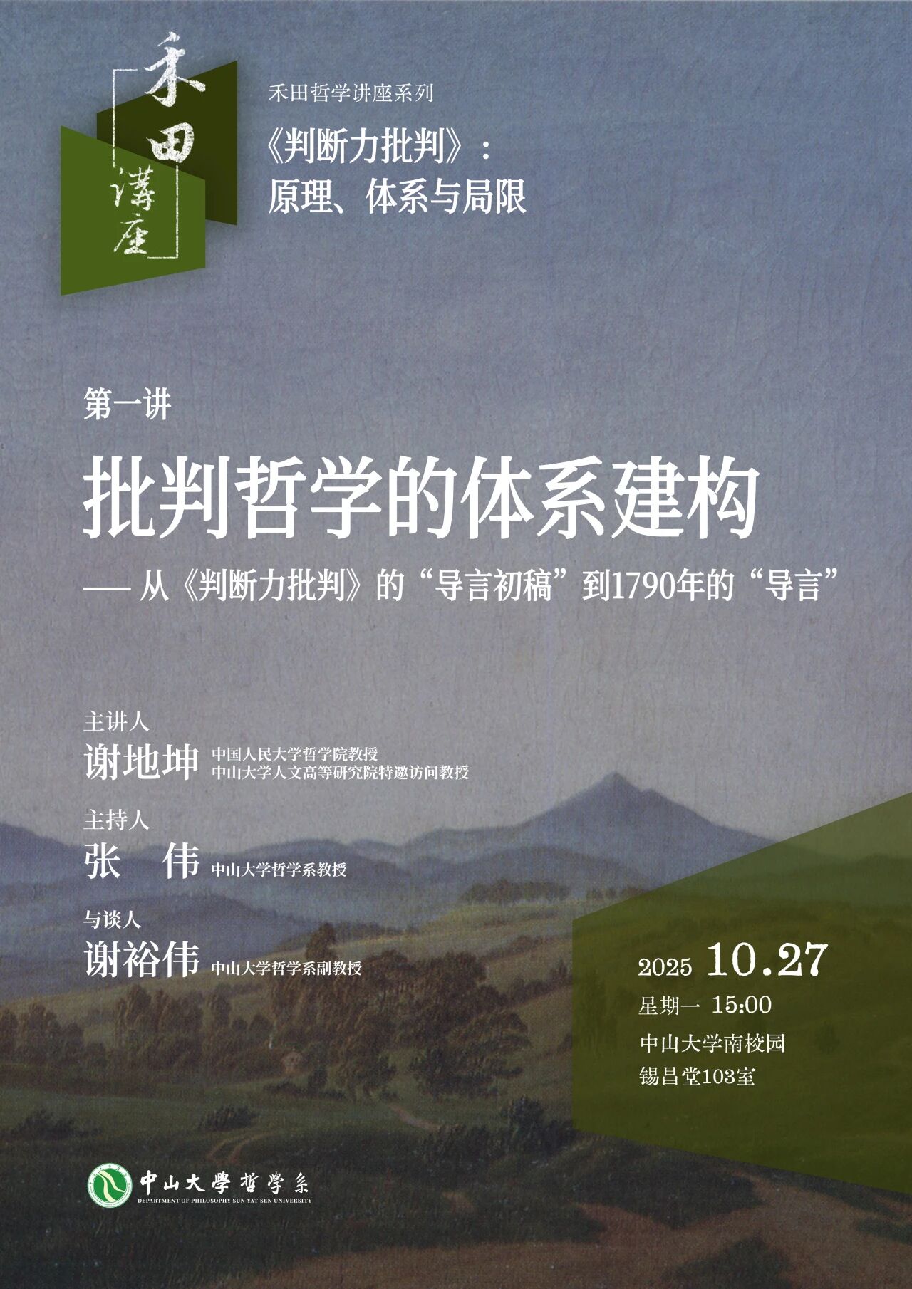 禾田哲学讲座系列第一讲预告 | 谢地坤:批判哲学的体系建构 ——从《判断力批判》的“导言初稿”到1790年的“导言”