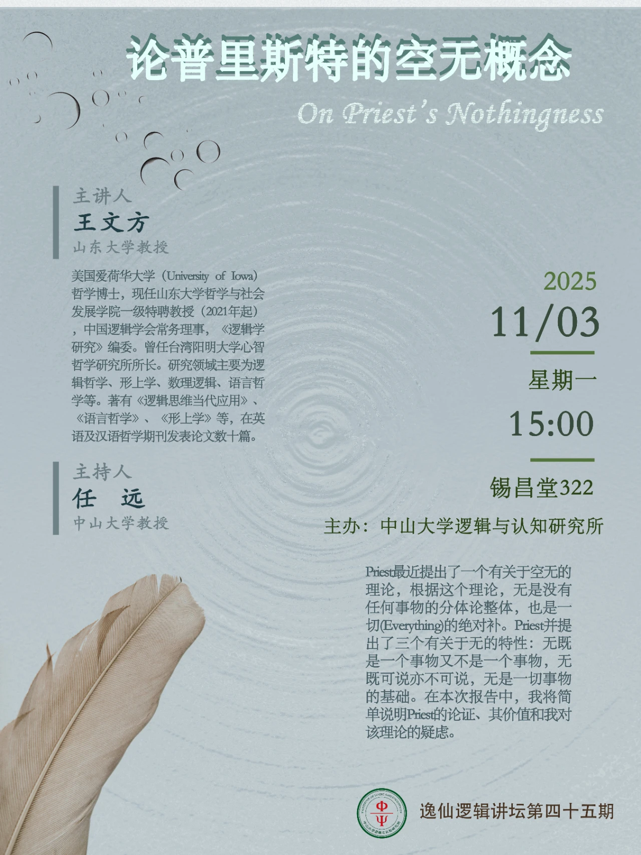 逸仙逻辑讲坛第四十五期预告|王文方:论普里斯特的空无概念
