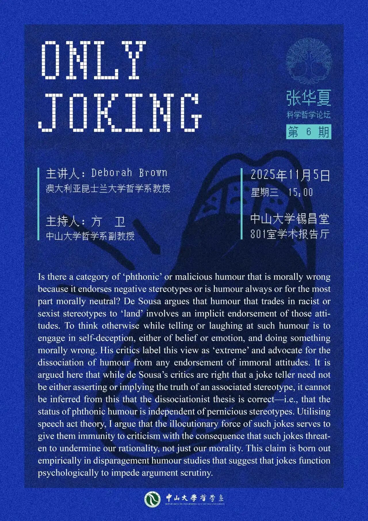 张华夏科学哲学论坛预告 | Deborah Brown:ONLY JOKING