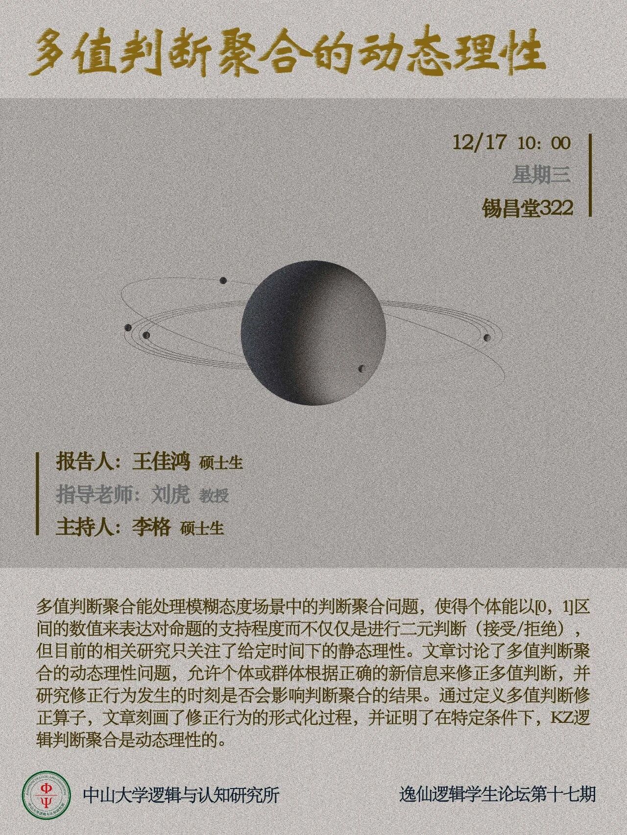 逸仙逻辑学生论坛第十七期预告|王佳鸿:多值判断聚合的动态理性