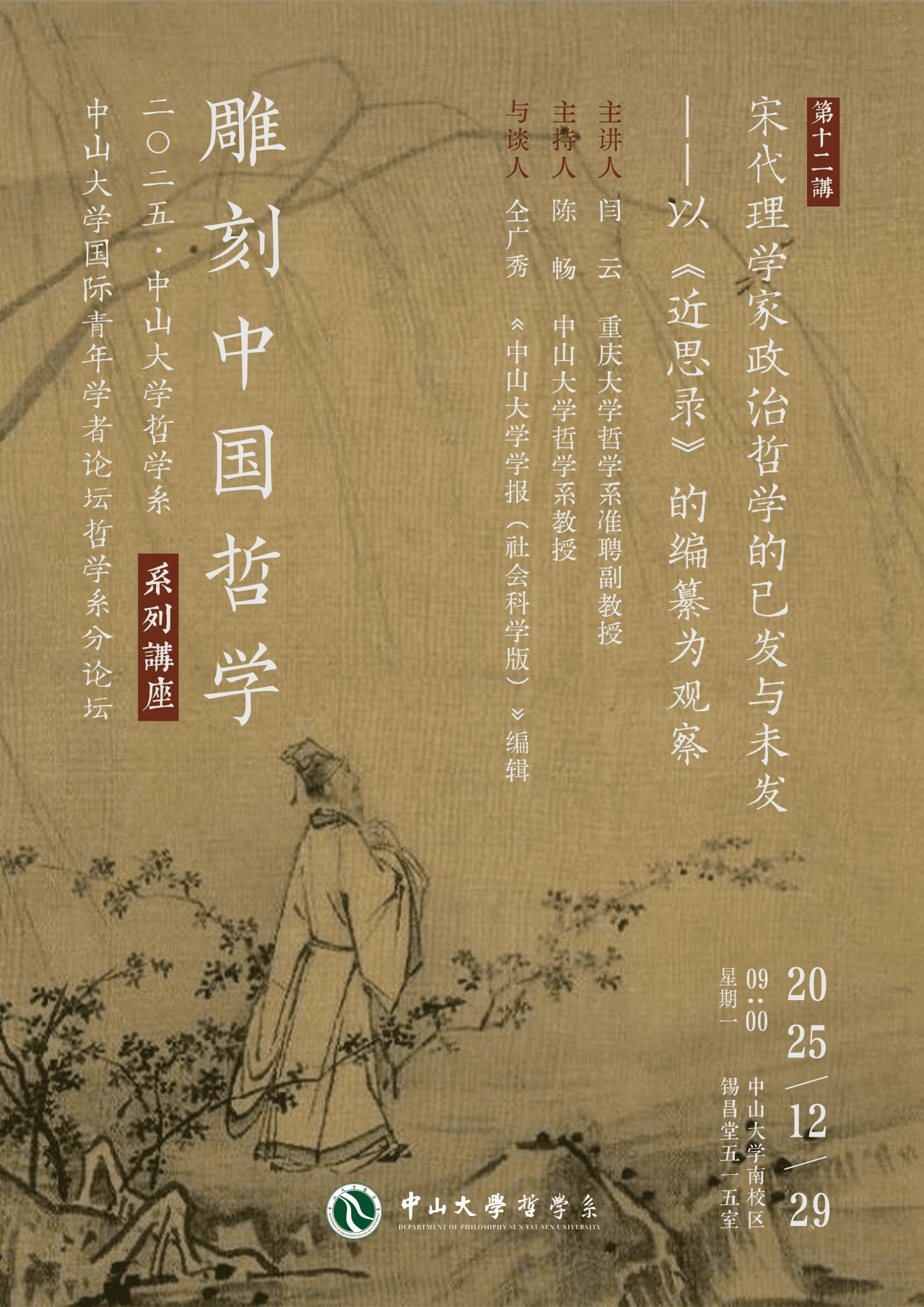 “雕刻中国哲学”系列讲座第十二讲预告 | 闫云:宋代理学家政治哲学的已发与未发——以《近思录》的编纂为观察