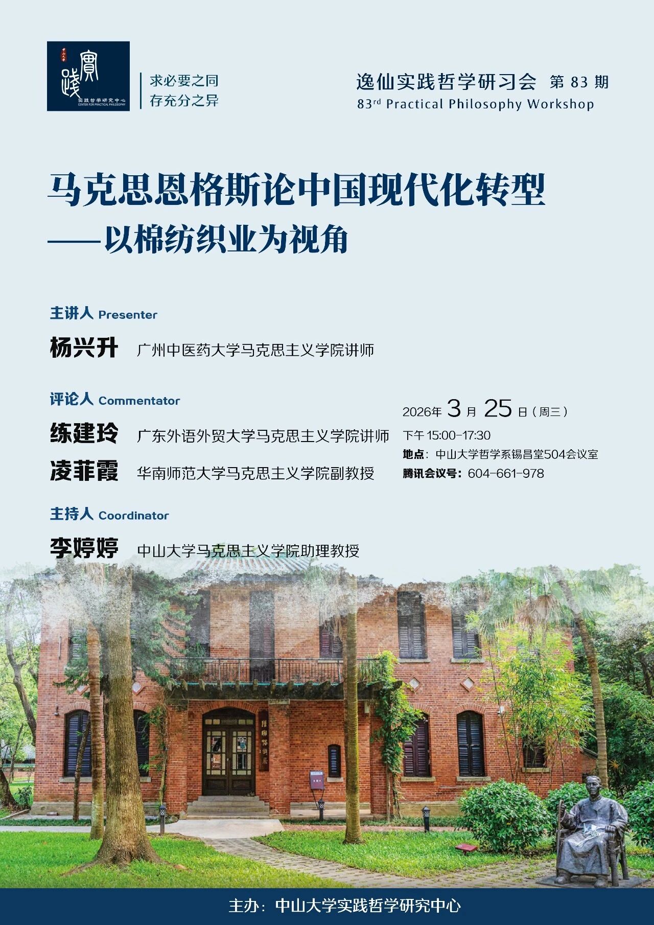 逸仙实践哲学研习会第83期预告 | 杨兴升 :马克思恩格斯论中国现代化转型——以棉纺织业为视角